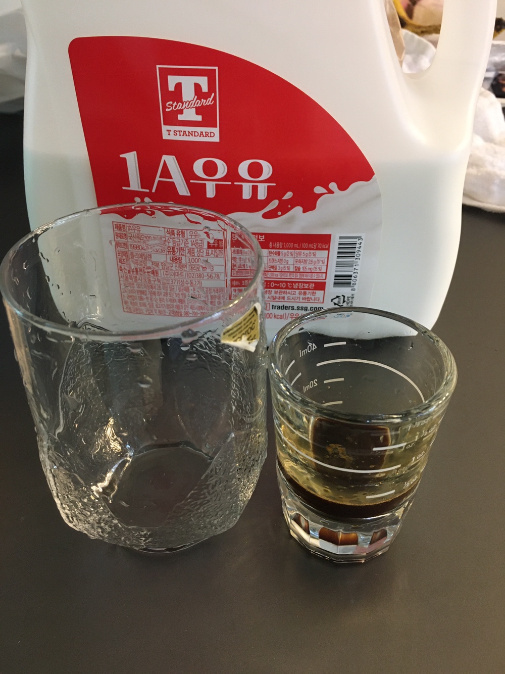 우유와 얼음잔이 완성되면